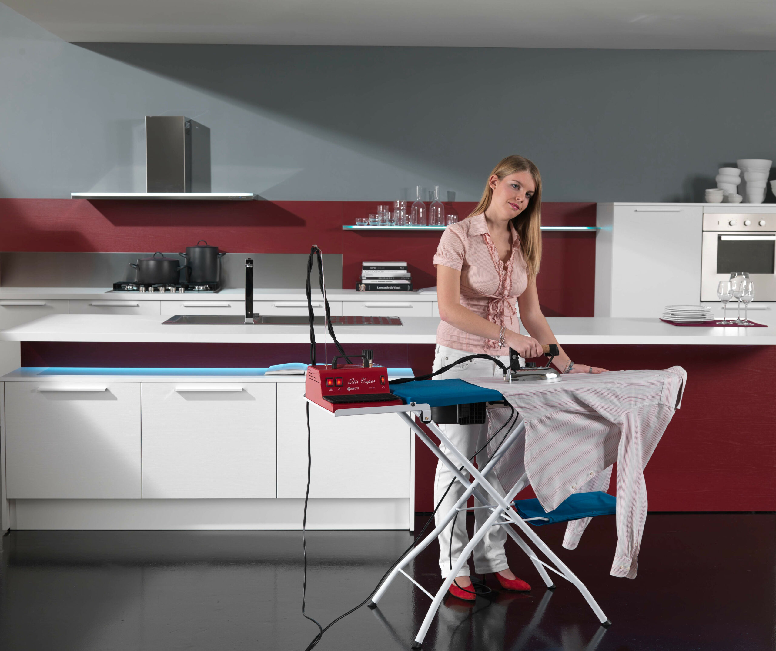 Маленький парогенератор с бойлером на 1,5 л, оснащенный утюгом Bieffe для профессионального глажения, возможно исполнение в разной цветовой гамме. Одн залив воды позволяет непрерывно гладить более часа. Со Stir Vapor у вас не будет проблем с накипью, поскольку нагревательный элемент выведен наружу и не контактирует с водой. Это также обеспечивает долговечность утюга, который может служить 30 и более лет!